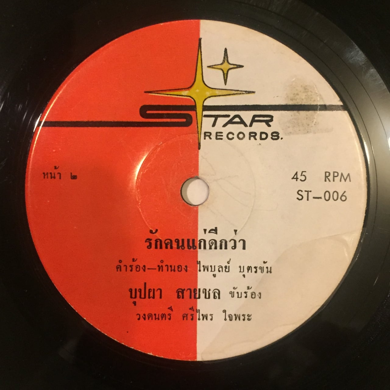 タイの7インチ盤で、男女ルークトゥン歌手のsplit 作。この10数年のタイファンクや辺境ワールド音楽ブーム以降ヴィンテージタイ音楽はやはりファンキーグルーヴやサイケサウンド視点で聴かれがちですが、この手のじっくり聴かせる歌ものも聴かれて欲しいと思っています。
