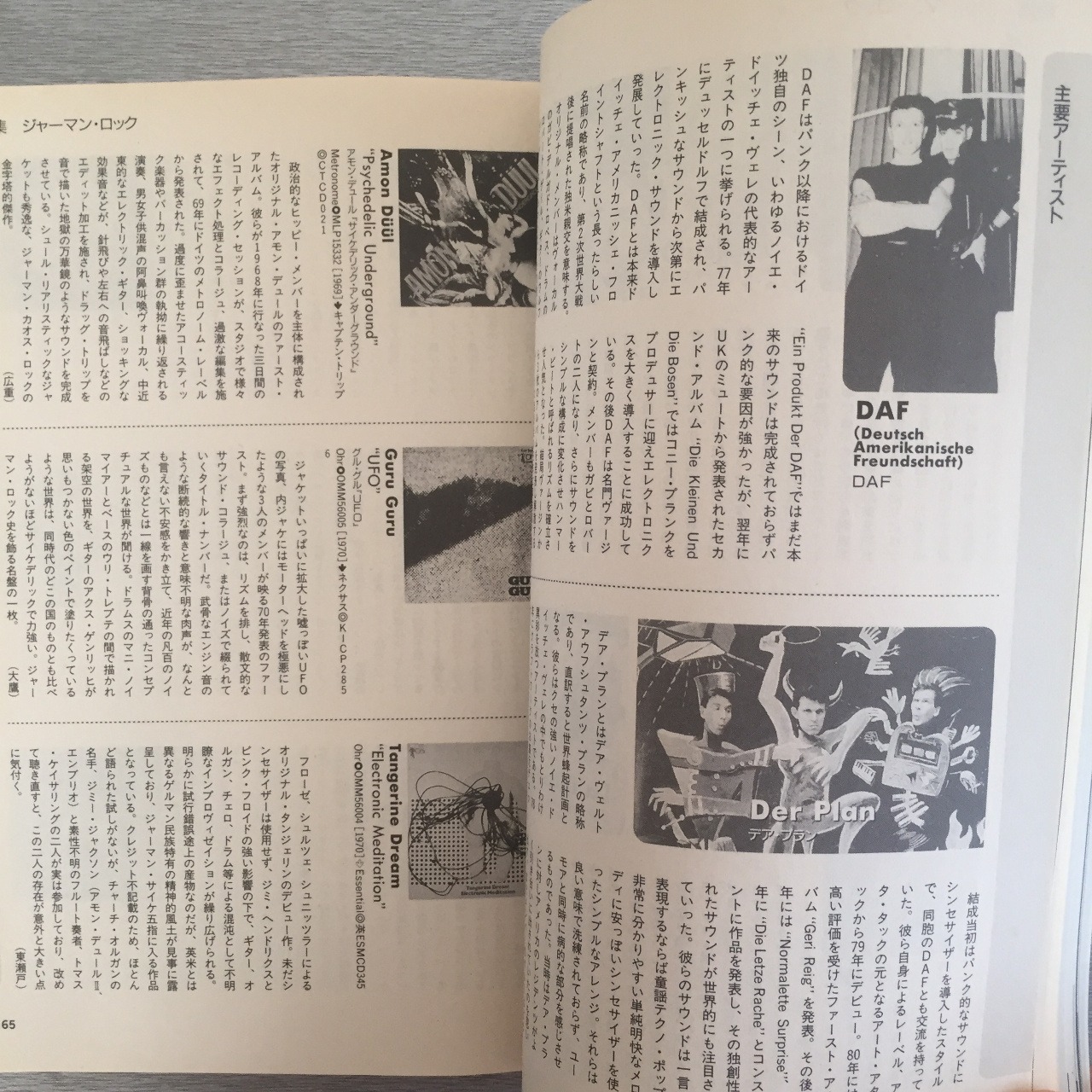 1970年代を中心にジャーマンロック・クラウトロック~一部ニューウェーヴまで、90年代の最評価を通じての視点を交えた論考と、ディスクガイドはCANの作品を単独とその他主要アーティストとその代表作品を取り上げています。各国レコード盤の写真も見ごたえあります。