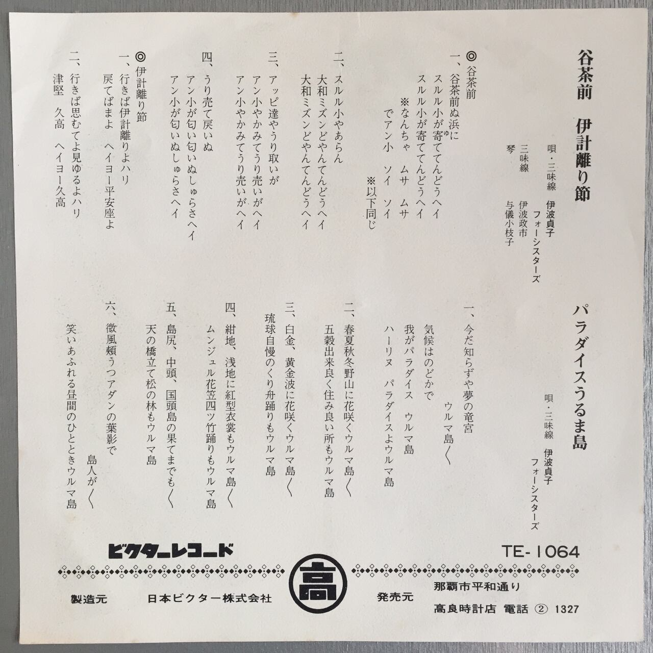 【7inch】谷茶前 伊計離り節 / パラダイスうるま島 - 伊波貞子フォーシスターズ