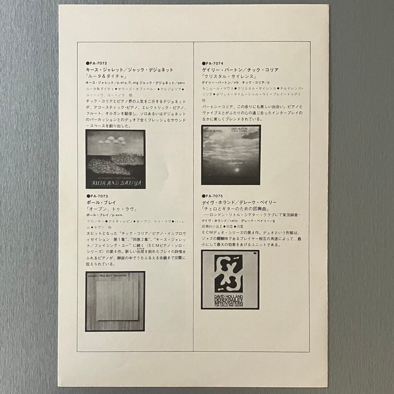 初期ECMの未発表テイク音源をコンパイルした1973年リリースの日本企画盤レコード。インサートあり、帯付。