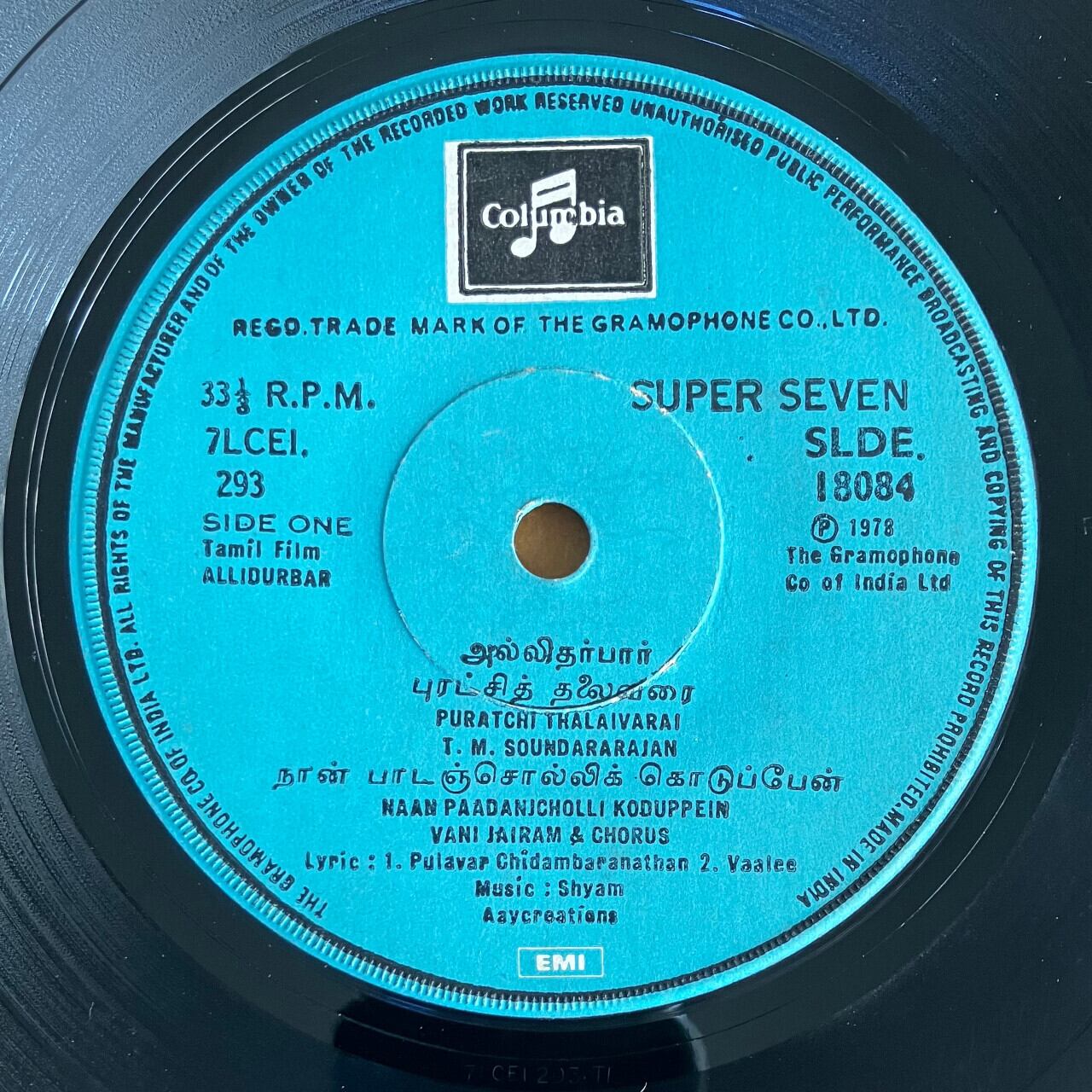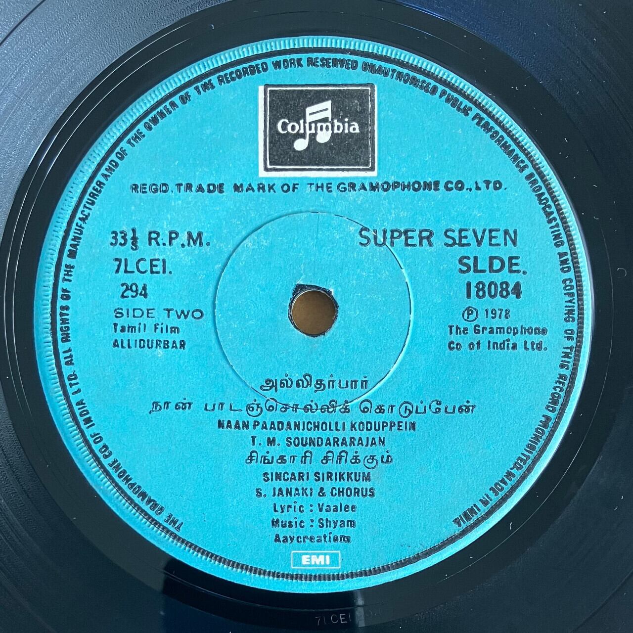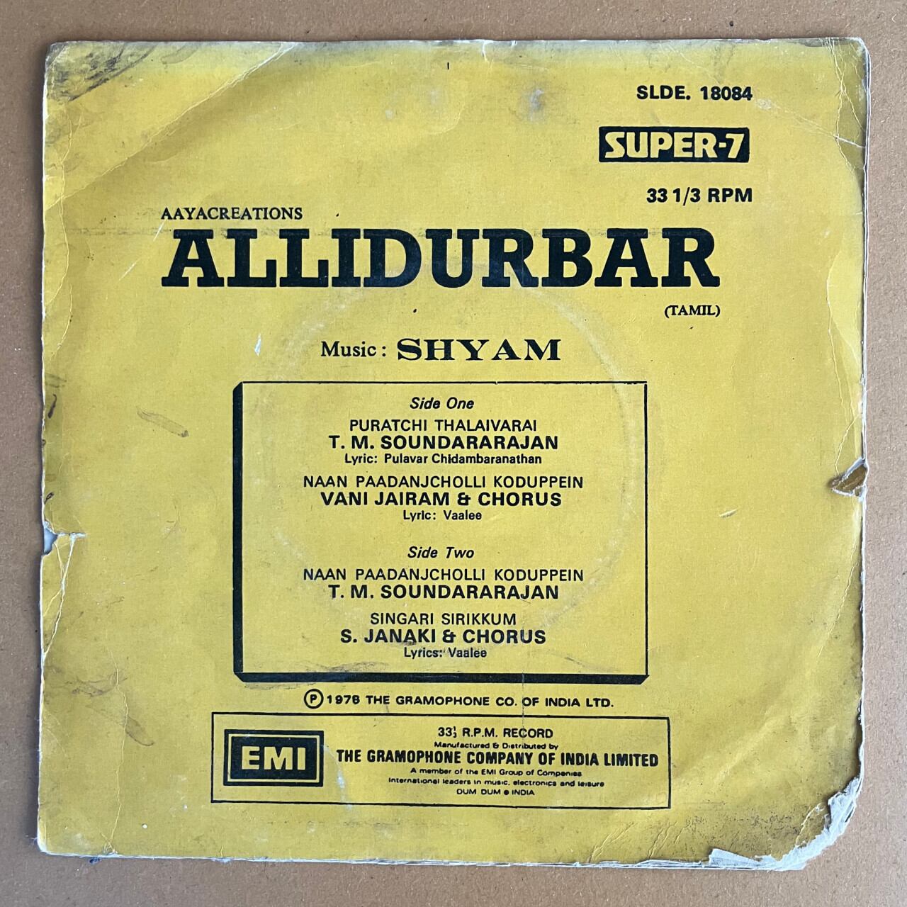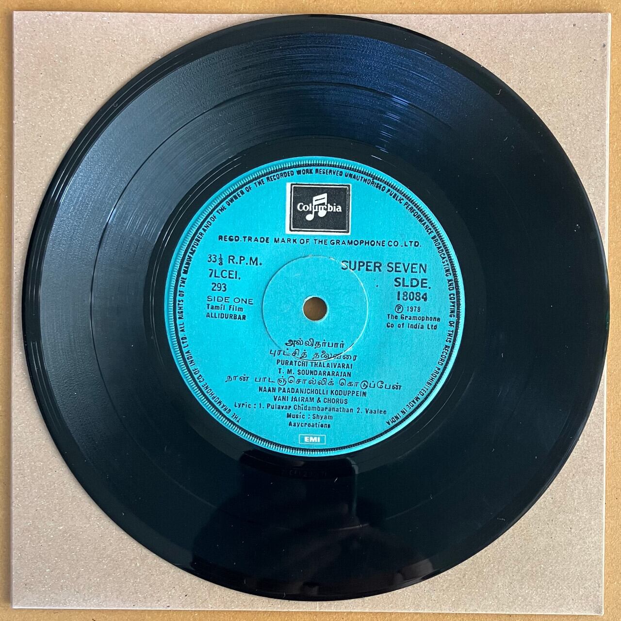 タミル・ナードゥ州出身のインド人映画作曲家Shyamによる1978年発表のボリウッド映画のサウンドトラック、7インチ盤レコード。