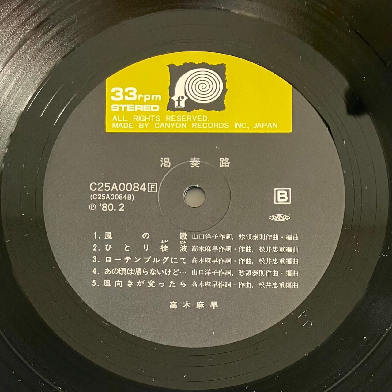 ヤマハのポピュラーソングコンテスト(ポプコン)出身のSSWとして1973年にデビューした、高木麻早の1980年の作品。レコード、帯付・インサートあり。